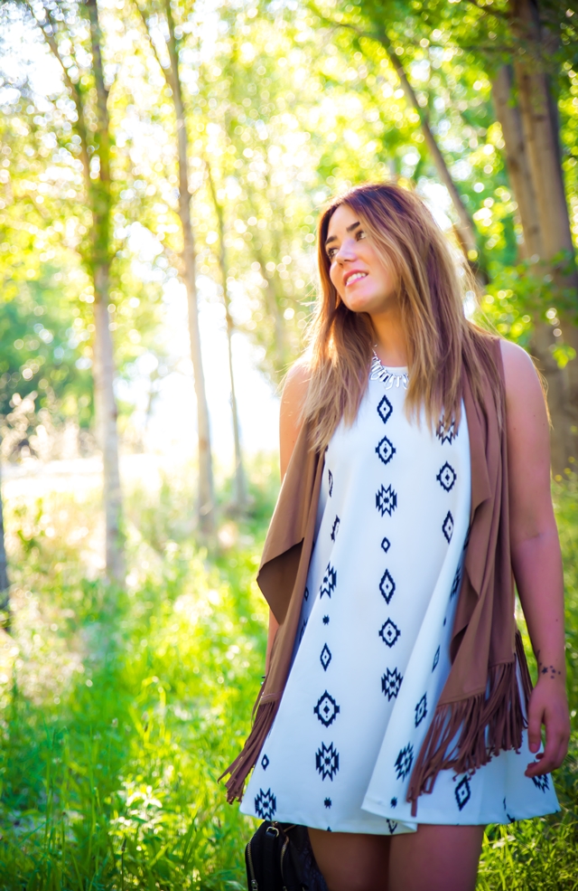 Hola callejera! me vuelvo pasar por aquí para enseñarte este look con mezcla de tendencias. He combinado el estilo bohemio, el vestido y el chaleco de flecos con el estilo sport chic de las zapatillas Nike y el bolso. El resultado me ha gustado mucho, se suele decir que el que no arriesga no gana, frase que utilizo para todos los aspectos de mi vida,¡Que el miedo no nos limite!